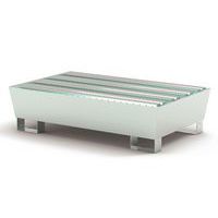 | Descrizione | Vasca per 2 fusti conica con doghe, Capacità (n.di fusti): 2, Griglia: si, Capacità di ritenzione: 200 L |
