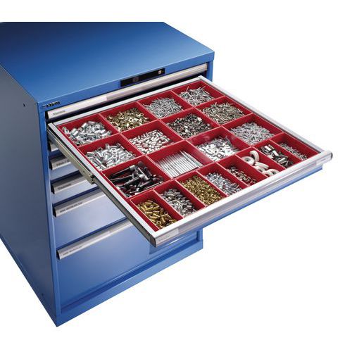 Vaschette in plastica per cassetti di armadi da 102 cm. Scomparto per cassetto. Include 24 vaschette da 15x15 cm.