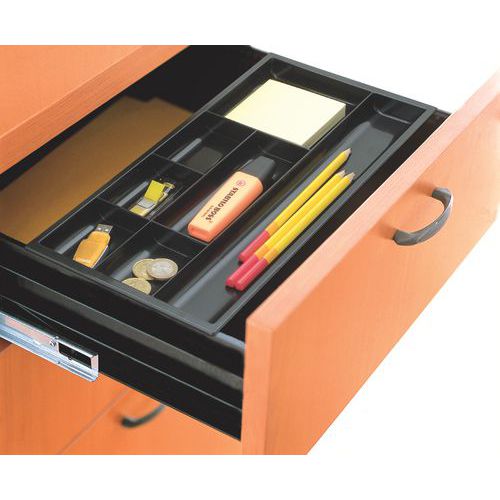 | Descrizione | Organizer per cassetto nero con 7 scomparti, Larghezza totale: 344 mm, N. di scomparti: 7 |