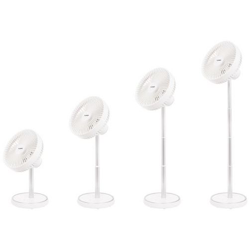 Ventilatore telescopico wireless Vento, con oscillazione, regolabile in altezza. Compatto, wireless, facile da trasportare ovunque. Con quattro regolazioni di velocità. Caricare il ventilatore telescopico wireless Vento con il cavo USB-C incluso. Funzionamento fino a 15 ore con una batteria carica.