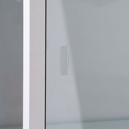 - Vetrina espositiva con 4 ripiani in vetro float da 6 mm, regolabili.