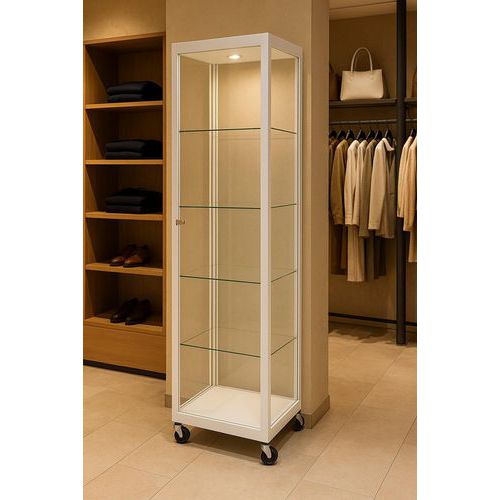 | Descrizione | Vetrina espositiva a colonna su rotelle-50x50x200cm-Sarazino Vitrines, Base, colore: Bianco, Altezza: 205 cm |