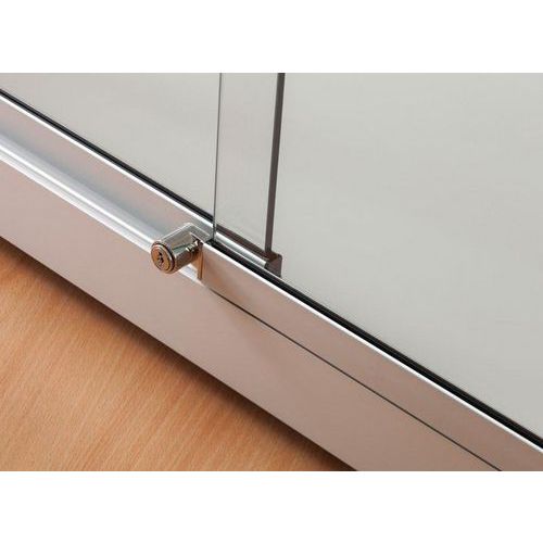 Vetrina espositiva con illuminazione ad azionamento rapido. Struttura della vetrina robusta e resistente. Vetro temprato di alta qualità su tutti i lati (pareti, ante e ripiani). 2 porte scorrevoli con serratura. 2 faretti a Led sul soffitto, temperatura colore regolabile in 4 posizioni (2700/3000/4000/6000 K).