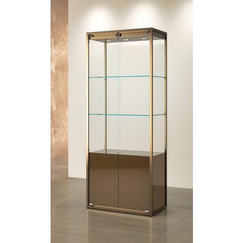 Vetrina espositiva con contenitore, Base, colore: Bronzo, Altezza: 190 cm, Larghezza: 75 cm
