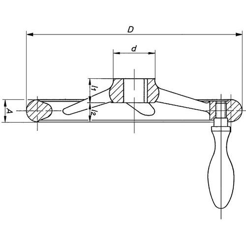 Volano a 3 razze (con Ø fino a 200 mm) e 5 razze (con Ø a partire da 225 mm). Volano levigato e lucido. Foro centrale che agevola i fori maschiati. Possibilità di installare un'impugnatura manuale.